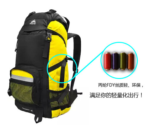 從數據上我們以可以看出,丙綸FDY絲,用在背包上是完全可以為背包的整體重量減負的。另外,丙綸FDY絲還具有無污染、無毒、耐化學性、可回收造粒等功效。廣泛的應用于汽車座墊、織帶行業(花邊布、鞋帶、提包帶、絲帶、無梭帶)等。